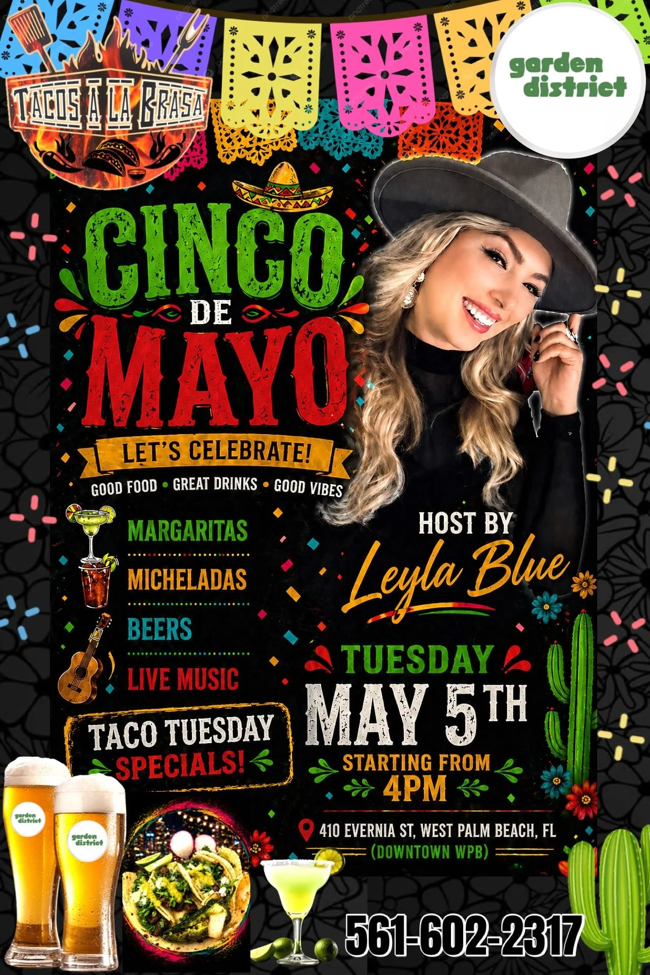 Back to All Events Cinco De Mayo Tuesday, May 5, 2026 4:00 PM 9:00 PM Google Calendar ICS Join us on Tuesday, May 5nd starting at 4PM for a full-blown celebration of tacos, beers, margaritas and nonstop vibes at Garden District. We’ve got everything you need for the perfect Cinco party.